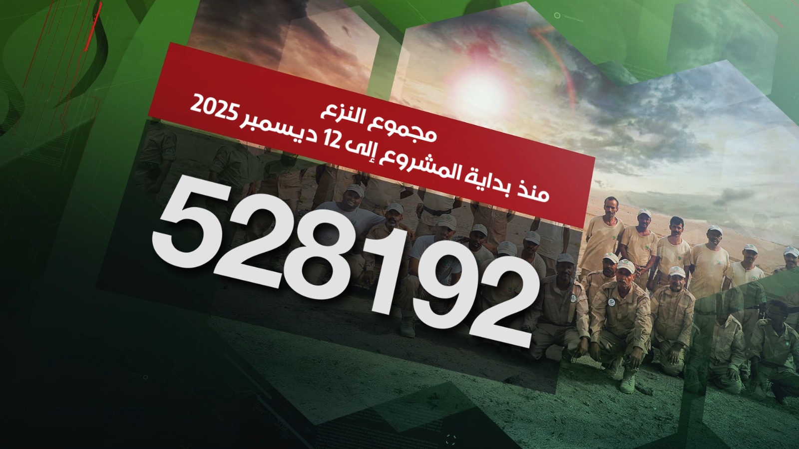 وفي جانب تطهير الأراضي، أشار البيان إلى أن فرق مسام نجحت منذ انطلاقة المشروع وحتى 12 ديسمبر 2025 في تطهير 74,804,269 متراً مربعاً من الأراضي اليمنية الملوثة بالألغام ومخلفات الحرب.