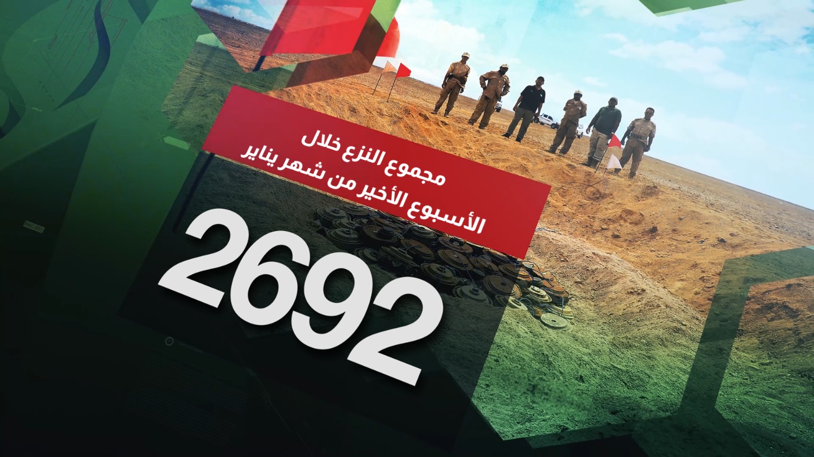 وبحسب البيان، شملت الكميات التي تم نزعها خلال الفترة نفسها 7117 ذخيرة غير منفجرة، و369 لغماً مضاداً للدبابات، و52 لغماً مضاداً للأفراد، إضافة إلى 16 عبوة ناسفة.
